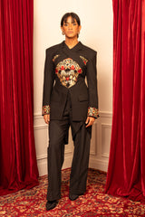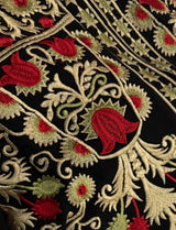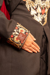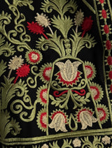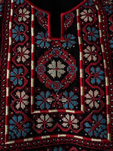Cette broderie traditionnelle, originaire de Jérusalem et de la région de Bethléem, fait partie du patrimoine palestinien appelé Tatreez. Les motifs de grenades, souvent brodées en rouge sur fond noir, symbolisent la fertilité, la prospérité et l’attachement à la terre. Les arabesques végétales et les entrelacs qui les entourent rappellent l’art sacré de Jérusalem, où la grenade est aussi un motif présent dans l’ornementation des lieux saints. Chaque pièce est ainsi plus qu’un simple vêtement : elle incarne une mémoire culturelle et spirituelle transmise de génération en génération.
